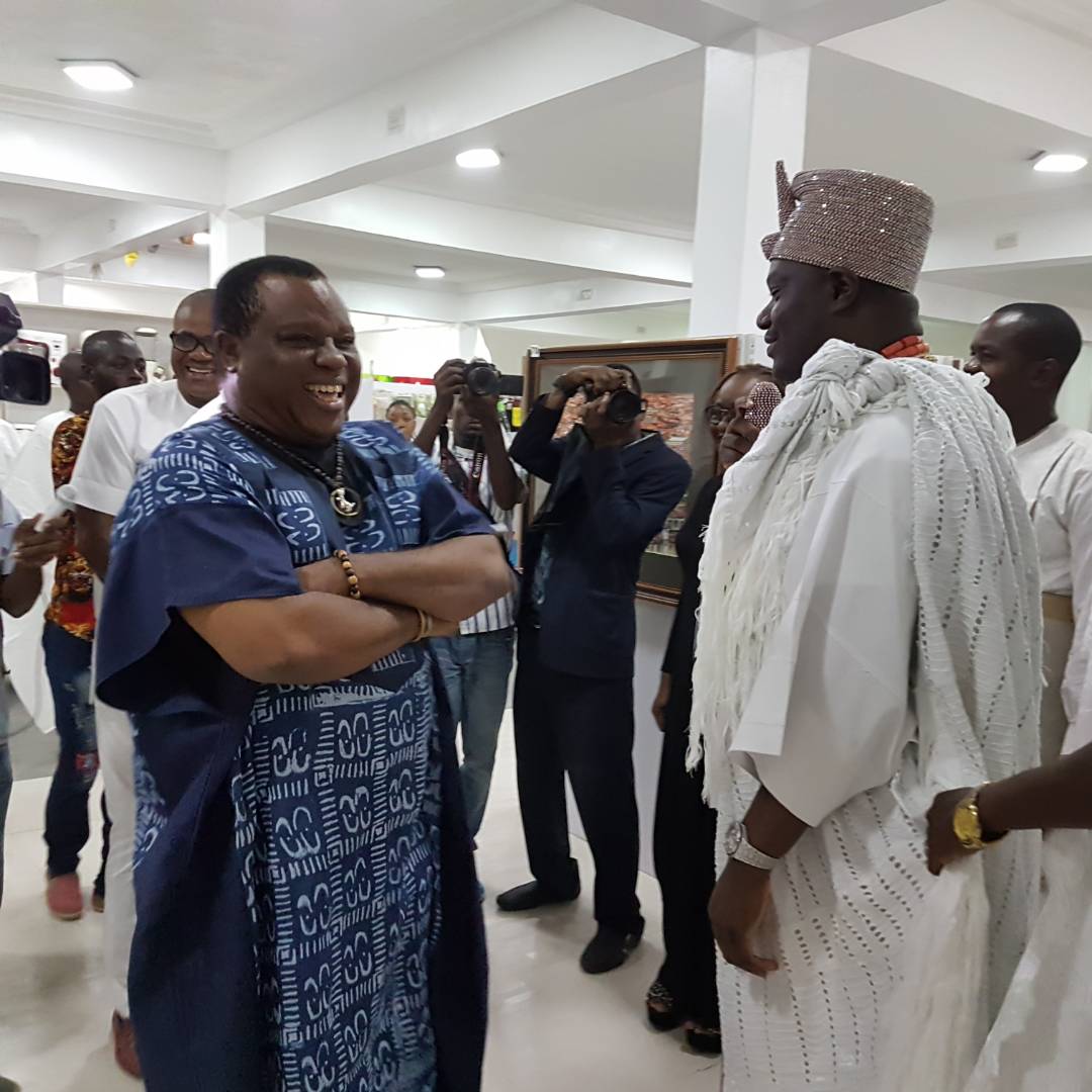 One of his most acclaimed exhibitions, “The Content” (2018), brought together leading watercolor artists and was organized by Mrs. Modupe Ogunlesi of Adam and Eve Gallery, Lagos. The exhibition was unveiled by His Imperial Majesty, the Ooni of Ife, Oba Enitan Adeyeye Ogunwusi, Ojaja II.